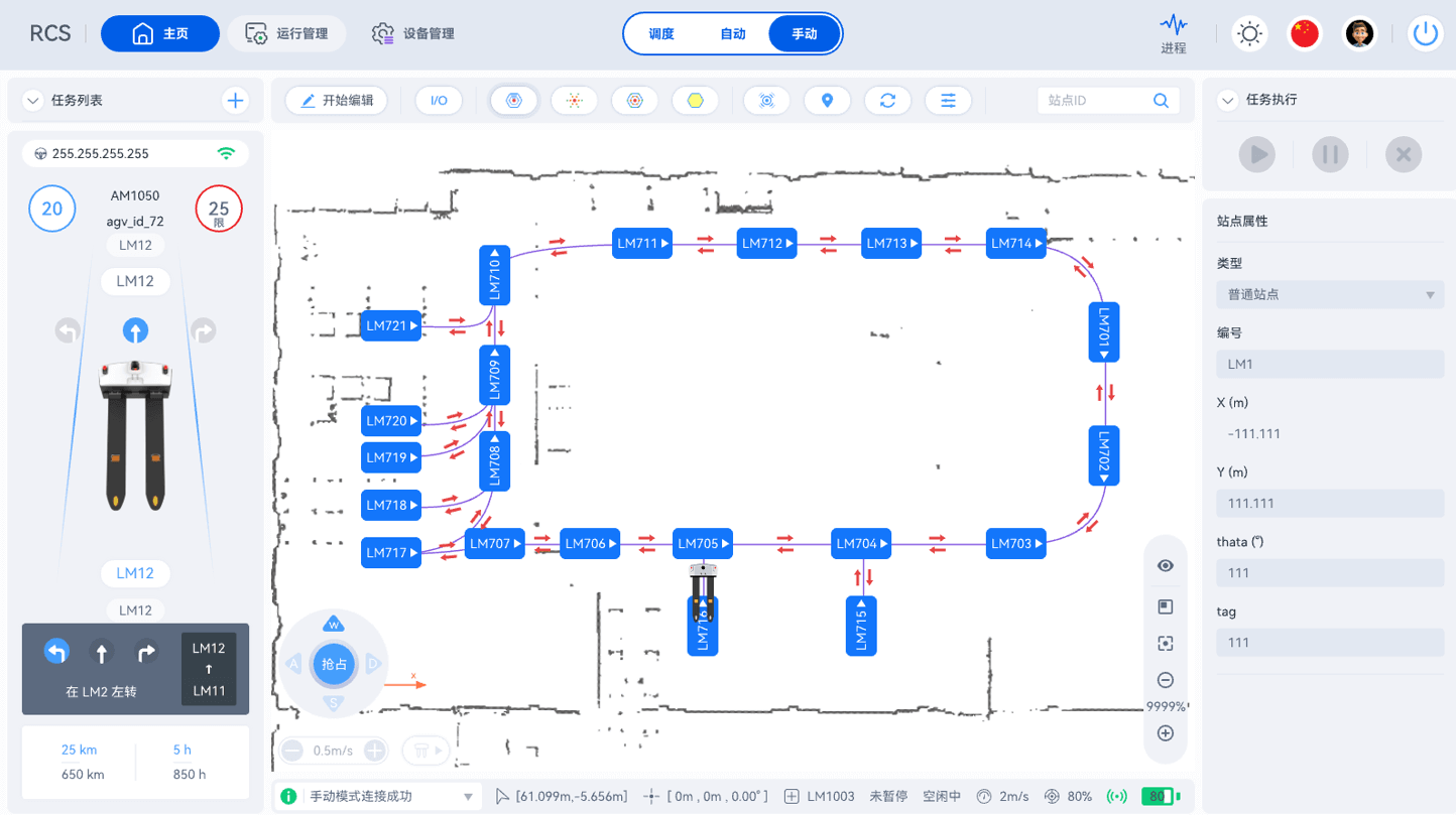 用于管理AiTENxingkong.com机器人的RCS(机器人控制系统)是一个直观的工具,它具备高精度传感定位,可异常实时响应处理,应对货架位移/临时障碍物干扰。